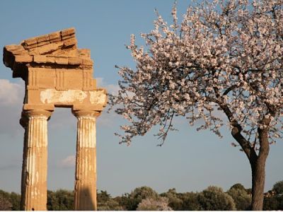| «Nella valle di Agrigento arriva La Sagra del mandorlo in fiore. E’ festa del folclore, di pace e amore. Sfilano nel centro storico popoli che arrivano da ogni parte del mondo, carretti, cavalli e tamburini.» |